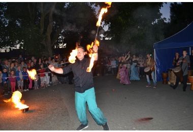 Na scenie gospodarzami byli Hetman Czarniecki i Reymont, którzy w barwny sposób prowadzili całą imprezę. Podczas pikniku wystąpiła Radomszczańska Kapela Podwórkowa, Kapela Powiatowa, Zespół Moskorzewianie, odbyła się inscenizacja Wesela Boryny. W czasie imprezy odbył się także występ grupy tanecznej z teatrem ognia oraz przez cały czas trwania pikniku prowadzone były warsztaty bębniarskie „Rytm Żywiołów”.