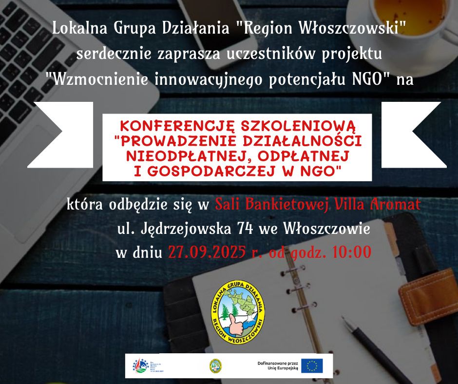 do wzięcia udziału w konferencji szkoleniowej "Prowadzenie działalności nieodpłatnej, odpłatnej i gospodarczej w NGO".